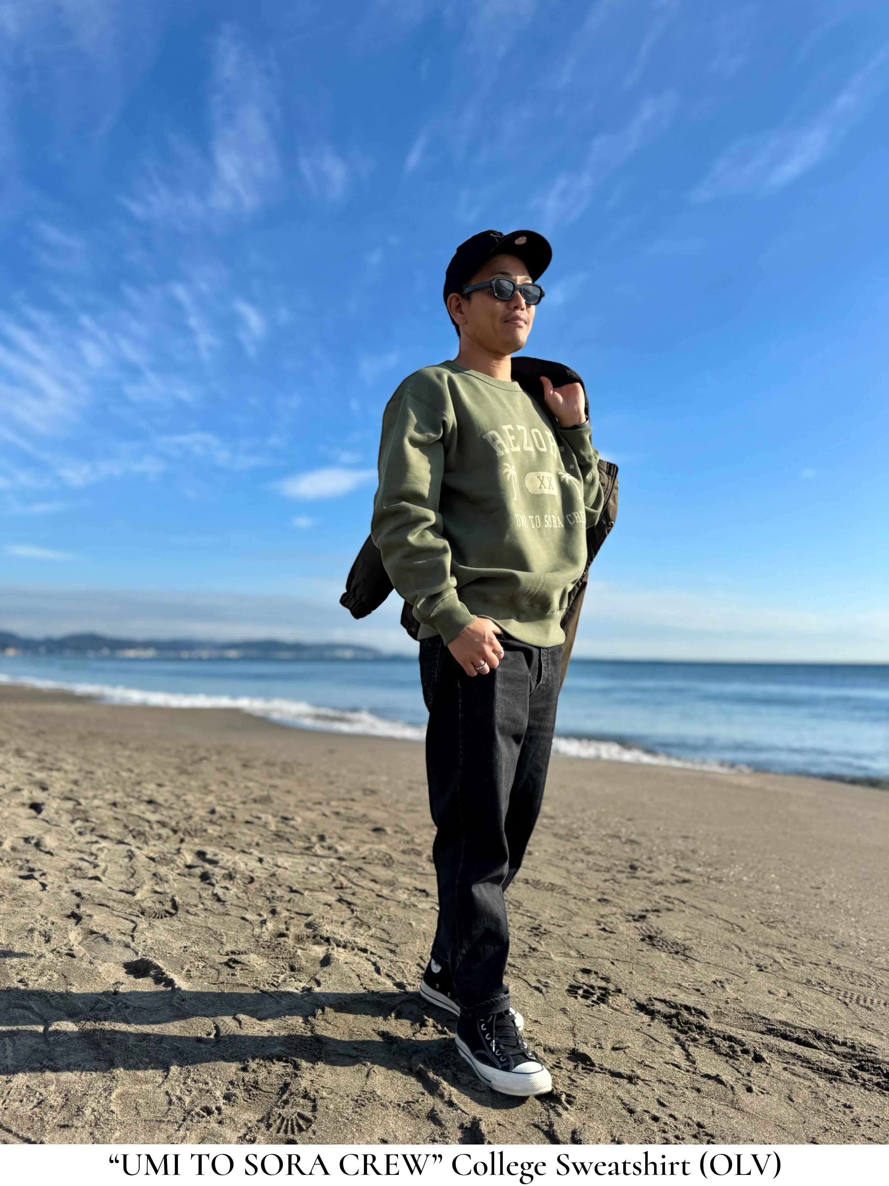 【即納/1点のみ/Olive/Lサイズ/撮影使用品】UMI TO SORA CREW” College Sweatshirt (OLV-FLOCKY) 12.4oz heavyweight - Winter Edition