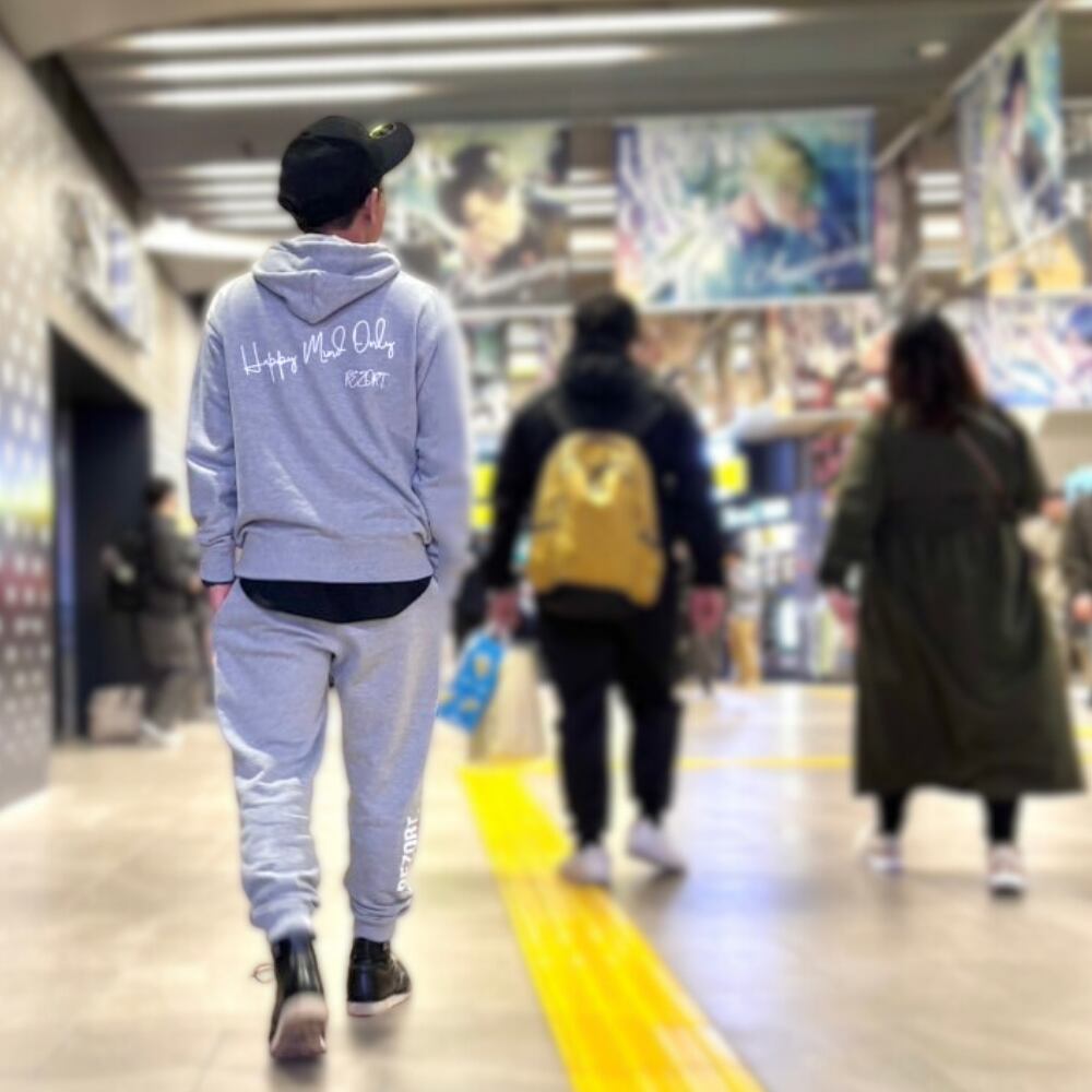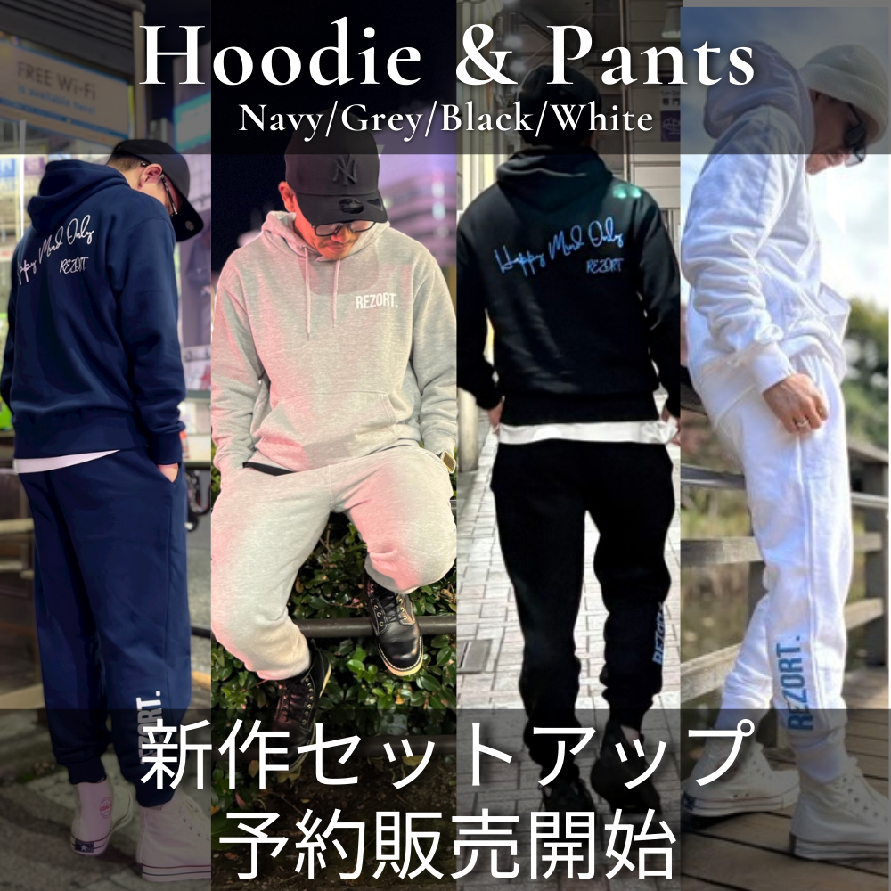 バックに手書きの“Happy Mind Only”、フロントにREZORT.ロゴ。