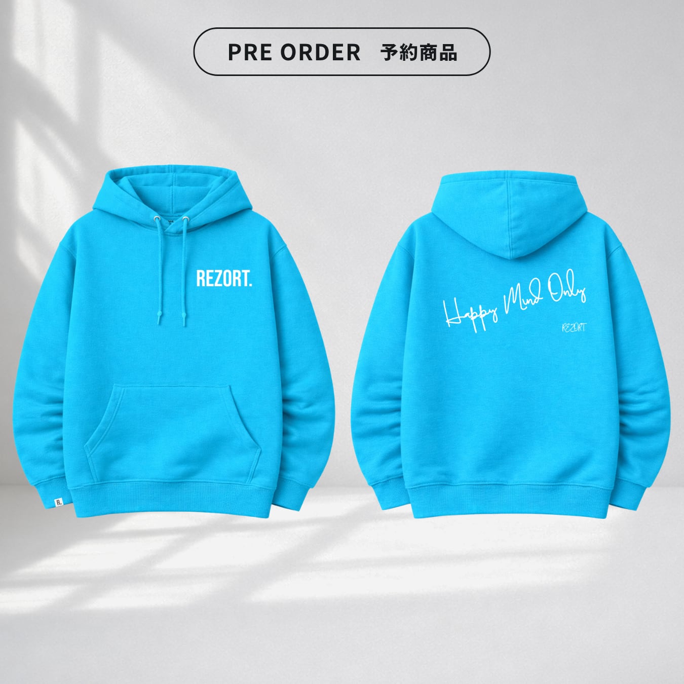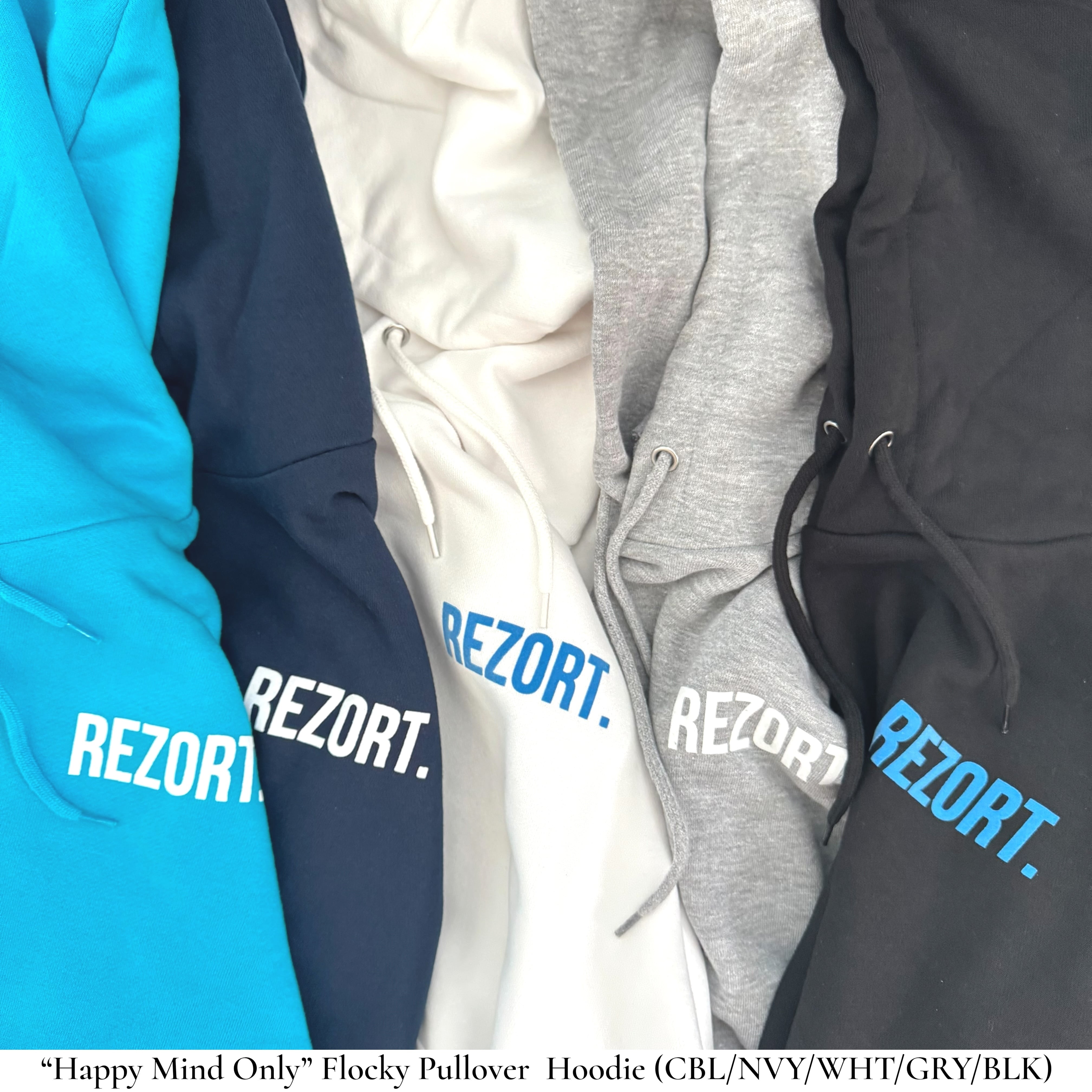 バックに手書きの“Happy Mind Only”、フロントにREZORT.ロゴ。