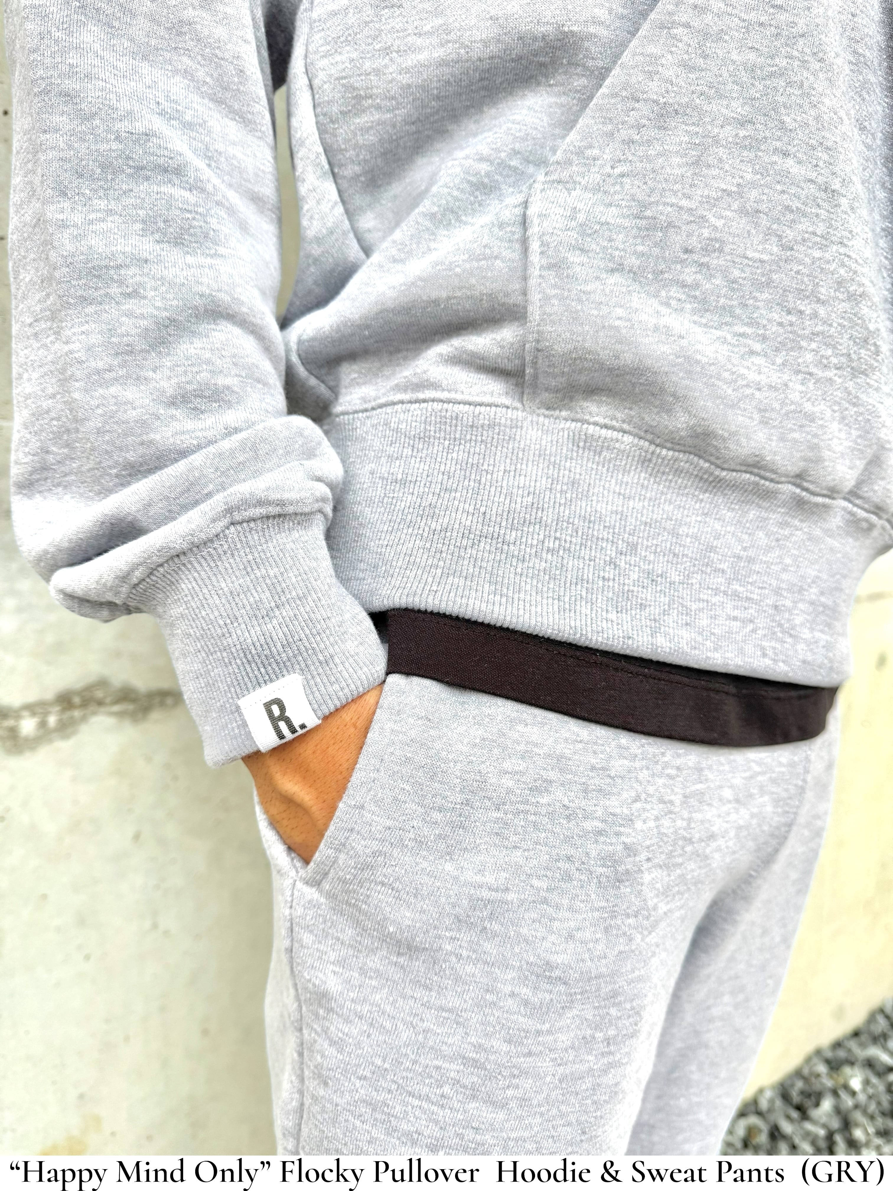 【即納/1点のみ/Gray/Sサイズ】Happy Mind Only” Flocky Pullover Hoodie (GRY) 10oz Midweight - All Season