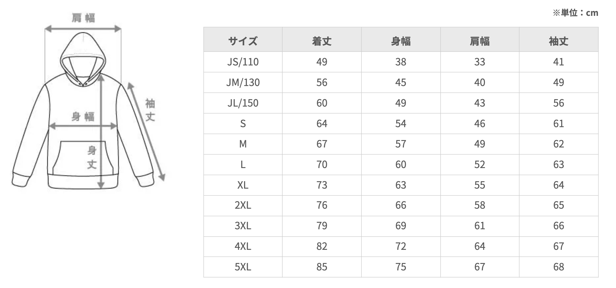 ※キッズサイズはフードの紐なし
