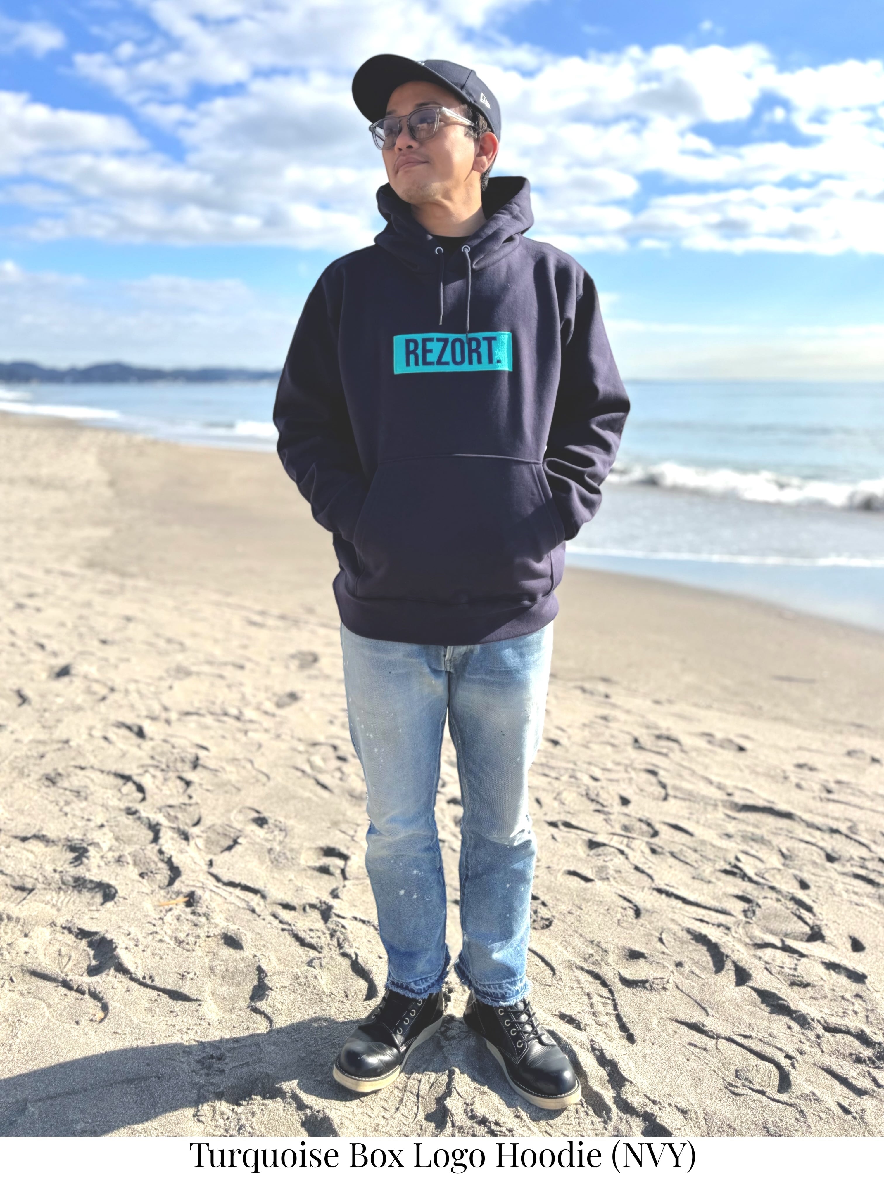 ・ターコイズ刺繍BOXロゴ