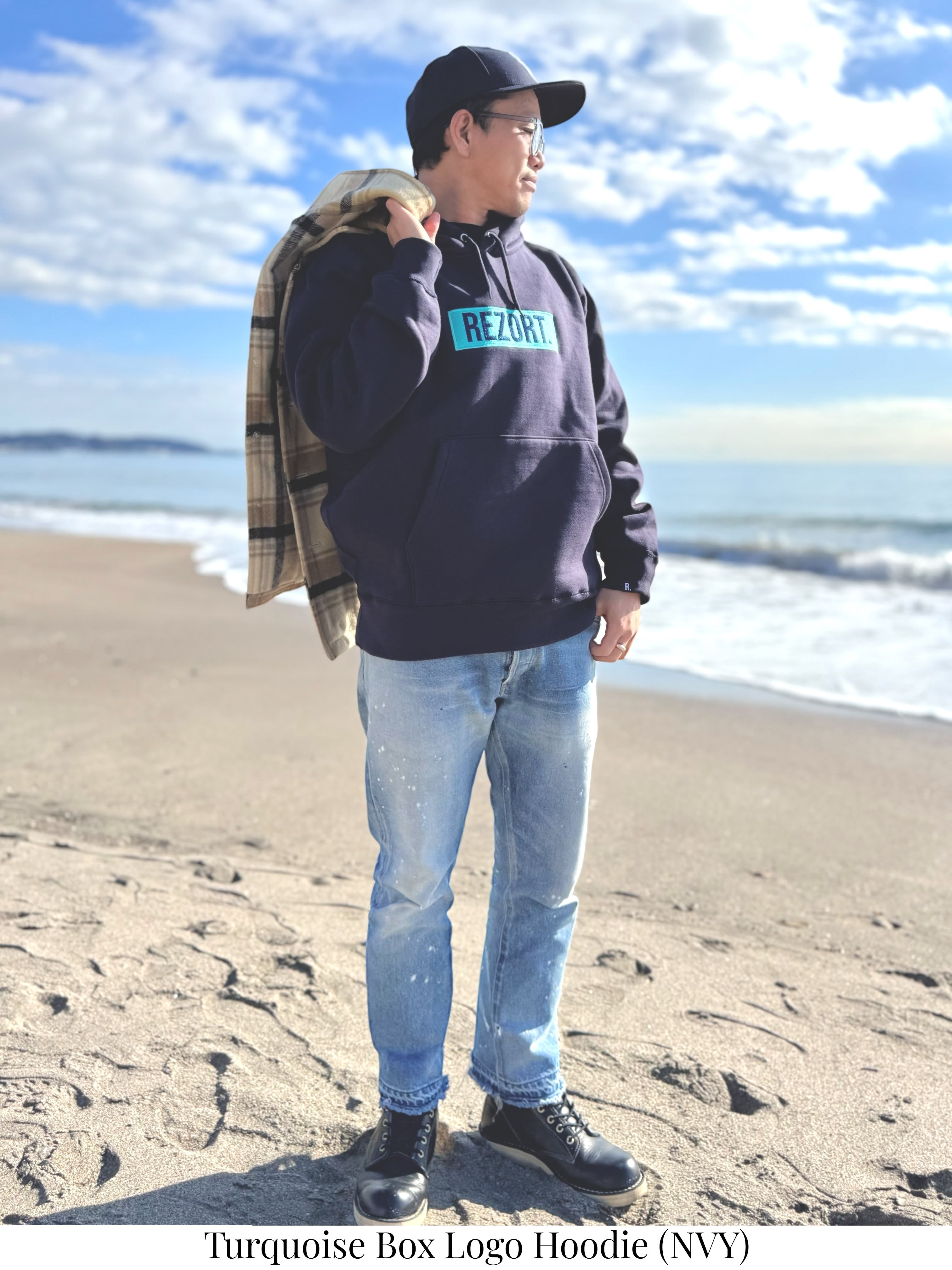 ・ターコイズ刺繍BOXロゴ