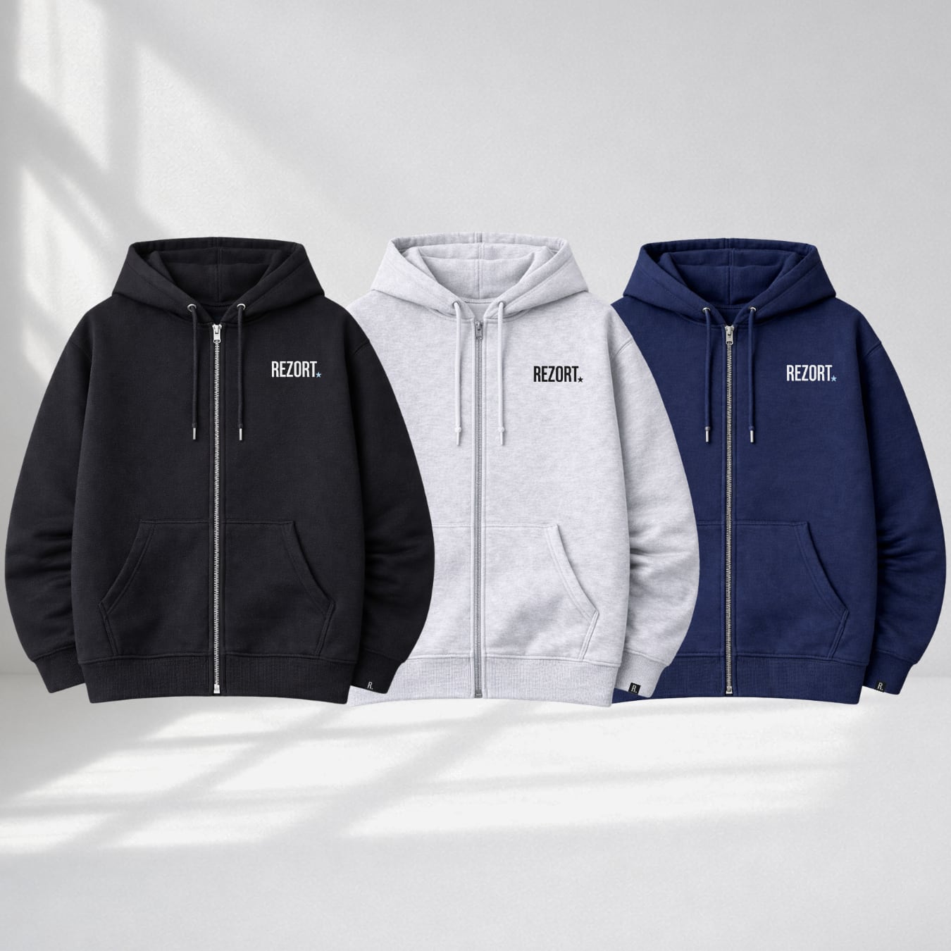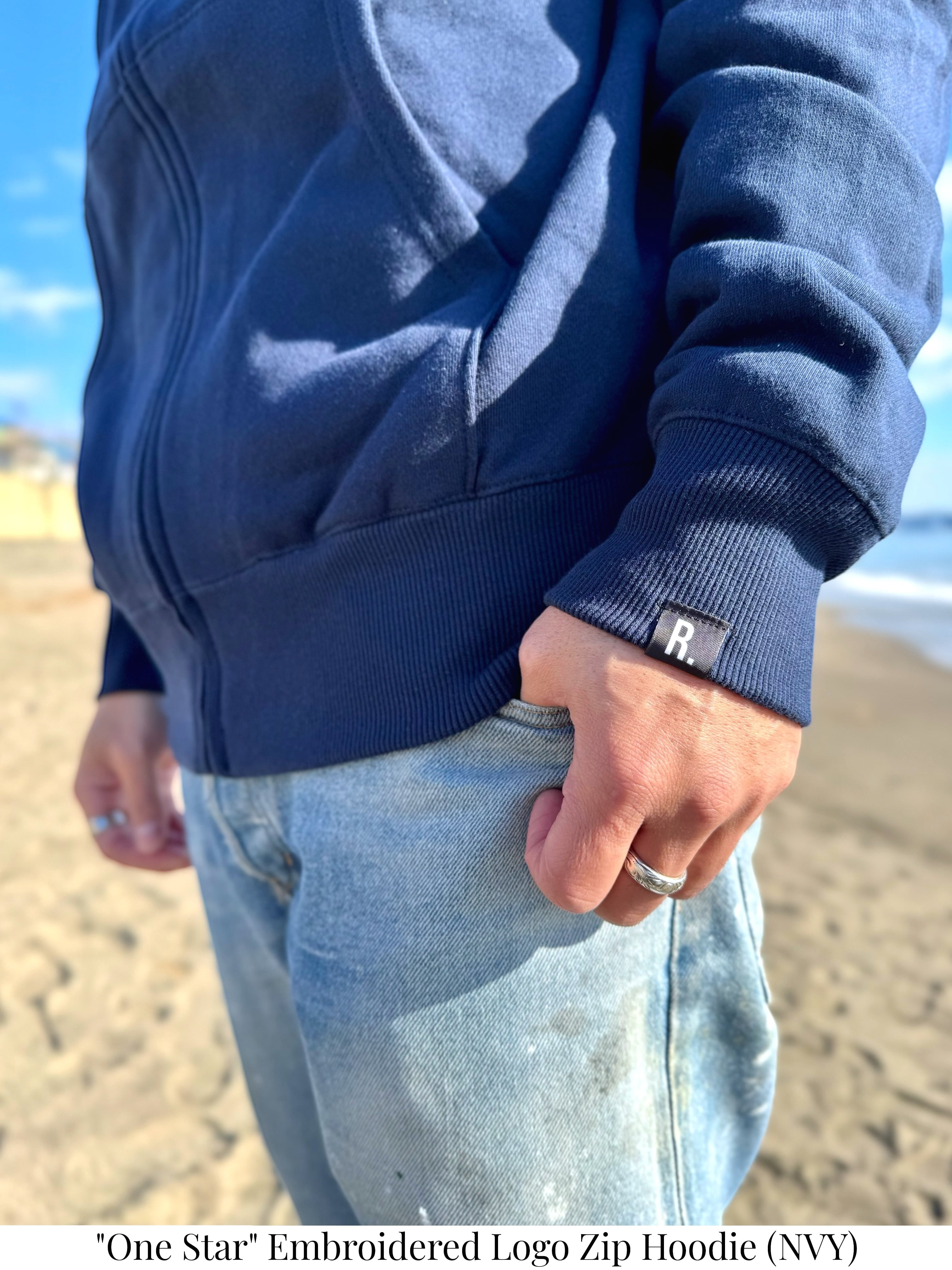 "One Star" Embroidered Logo Zip Hoodie (NVY) 10oz Heavy Cotton - All Season