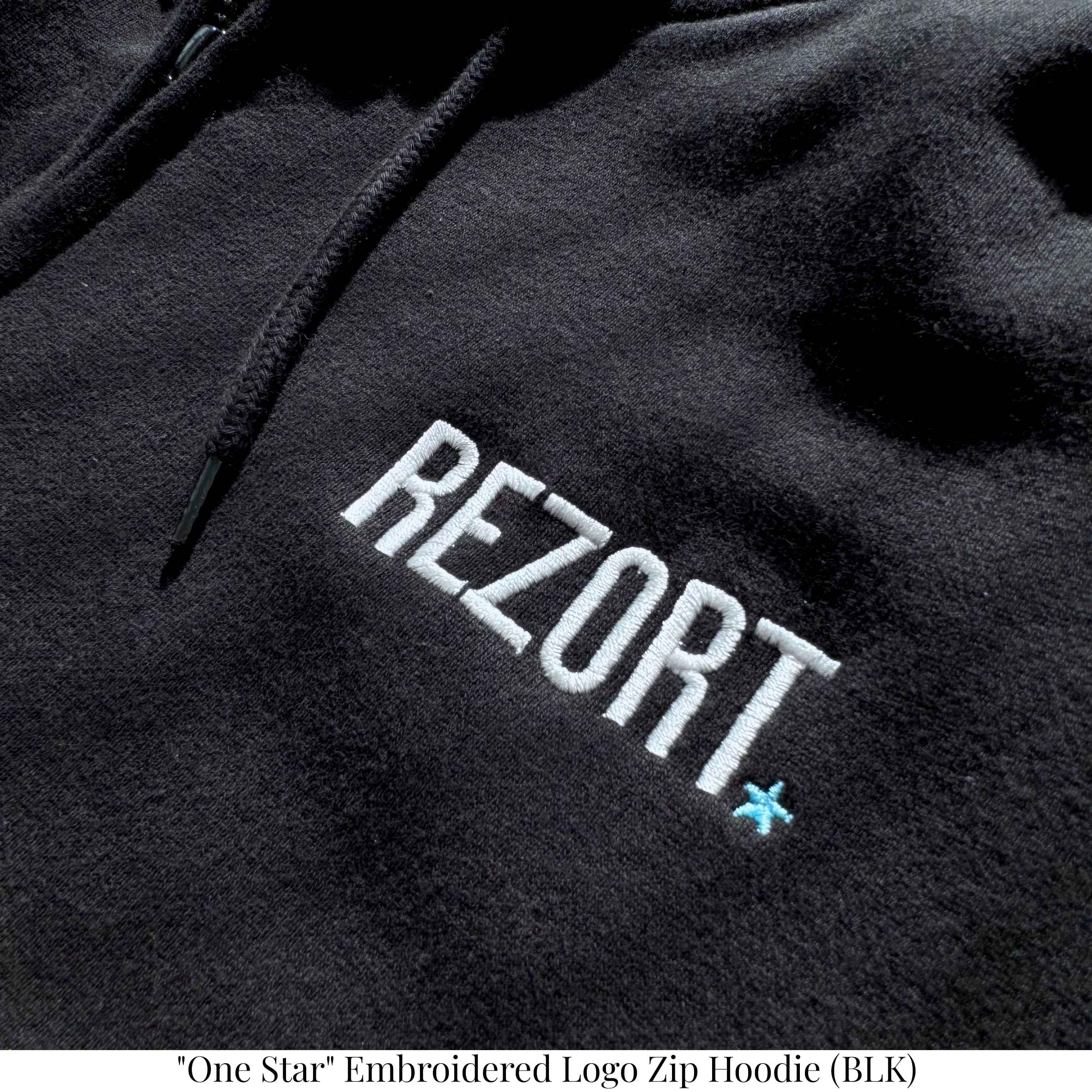 "One Star" Embroidered Logo Zip Hoodie (BLK) 10oz Heavy Cotton - All Season