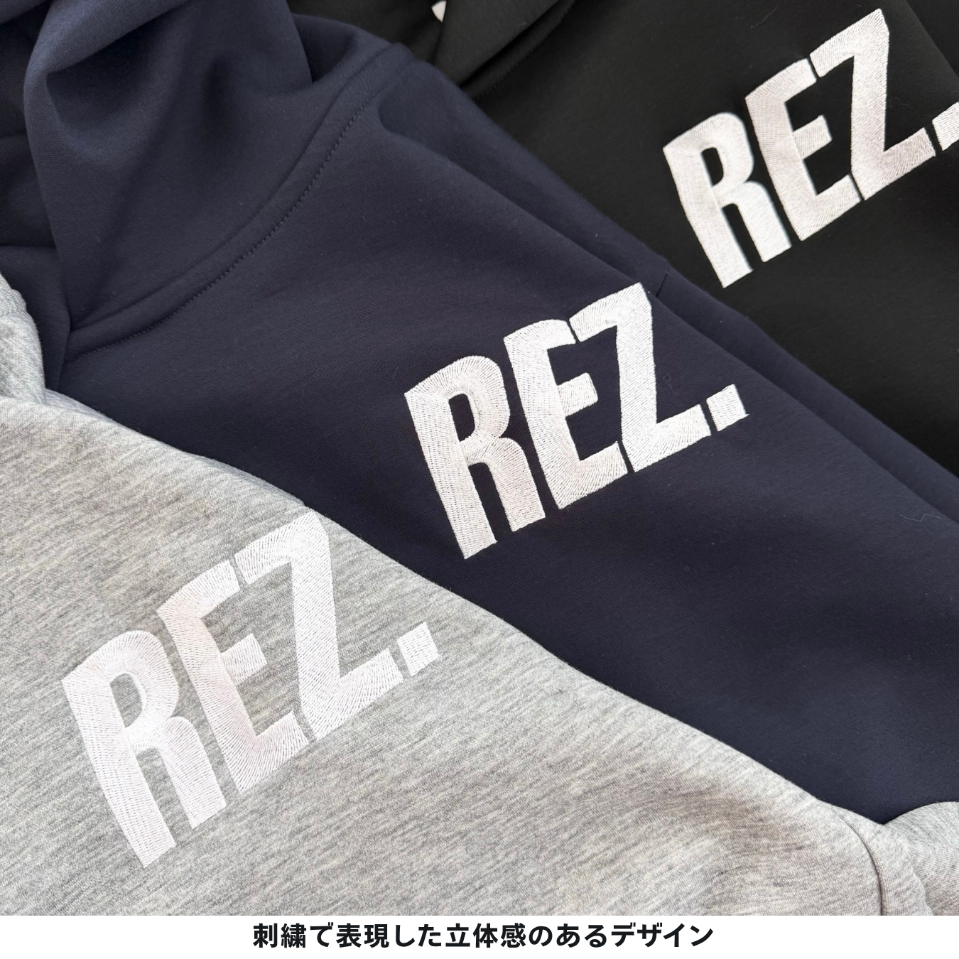 胸元のREZ.刺繍はあえて大きく。