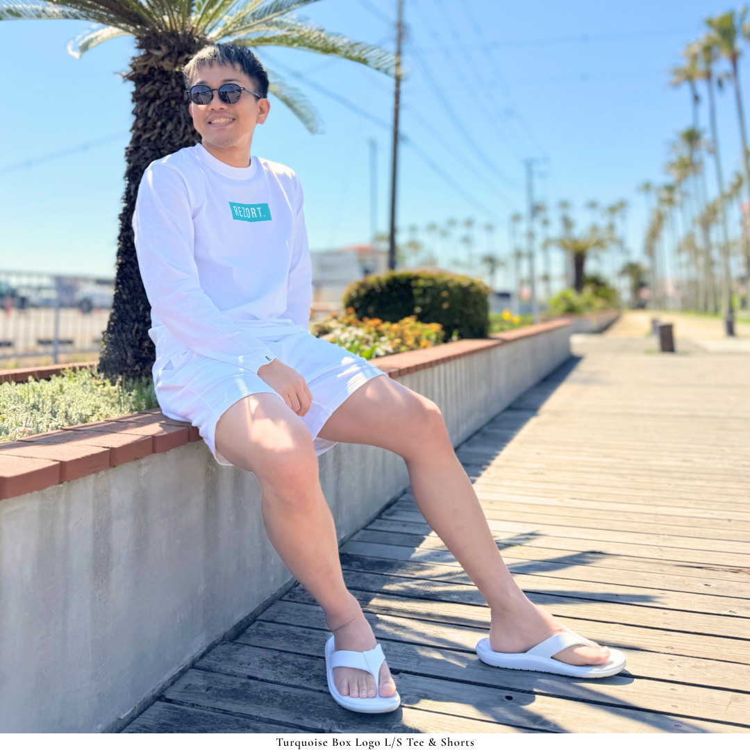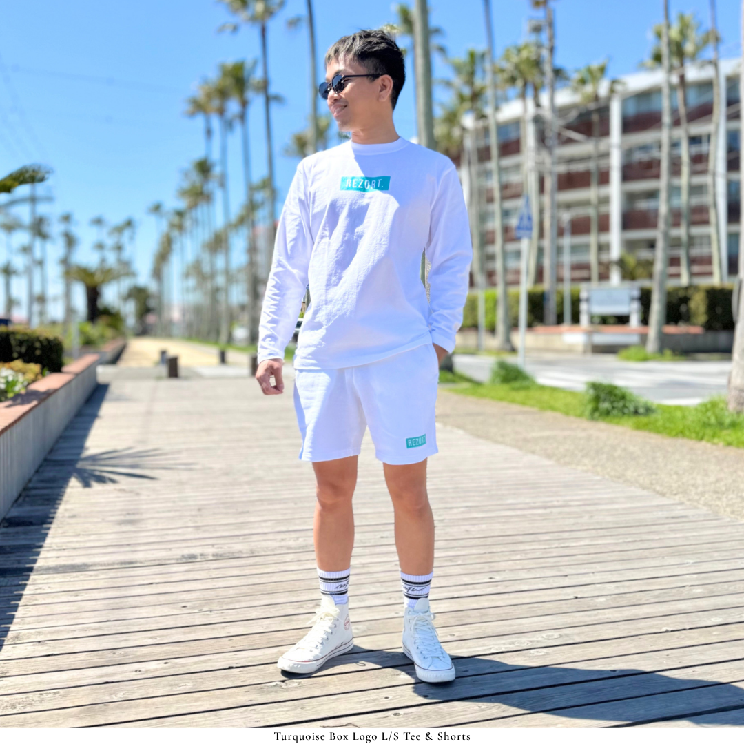 ブランドのシグネチャーであるターコイズBOXの中で、浮かび上がるREZORT.ロゴ。