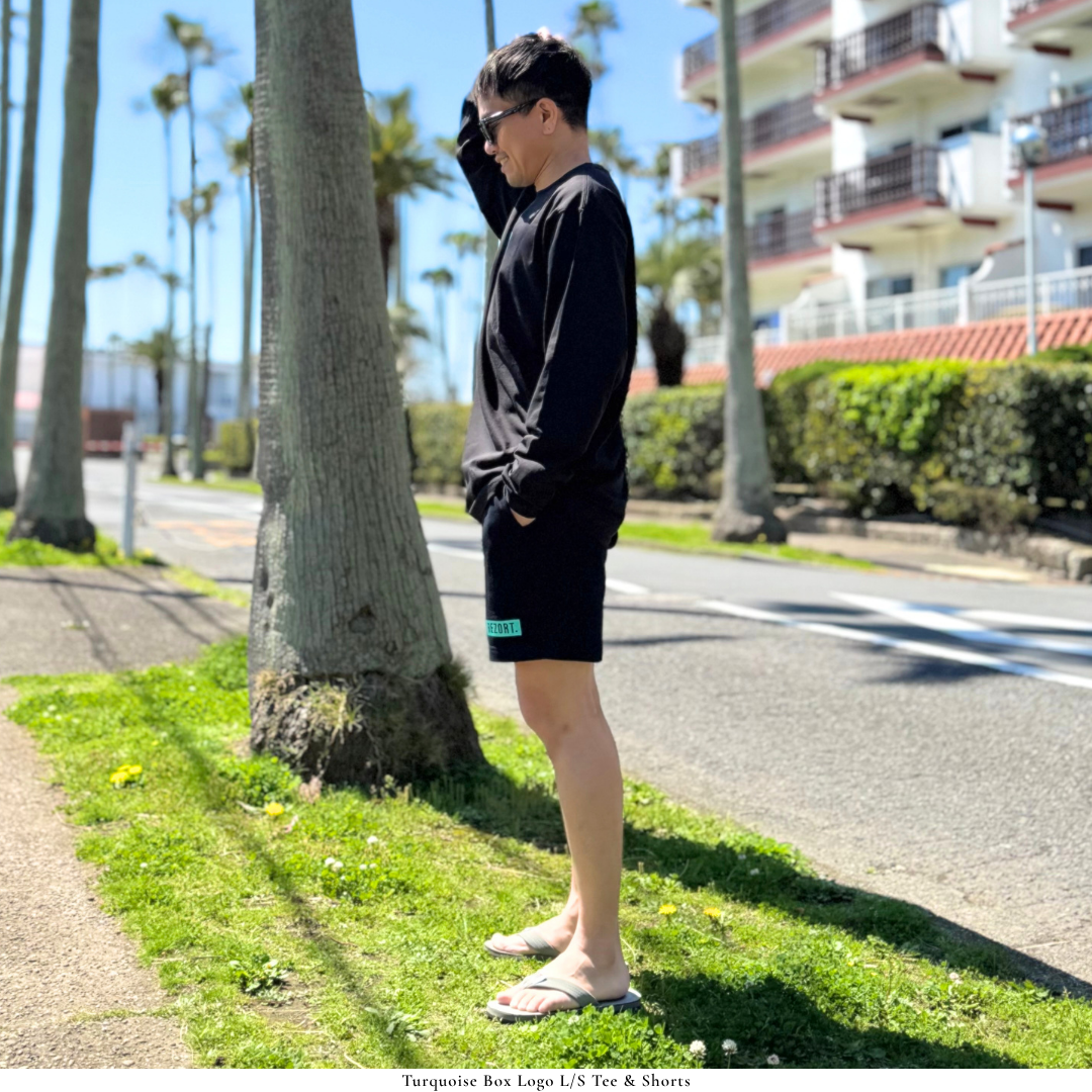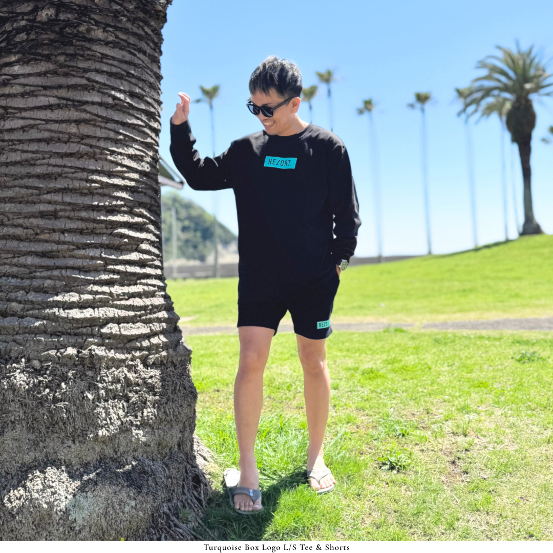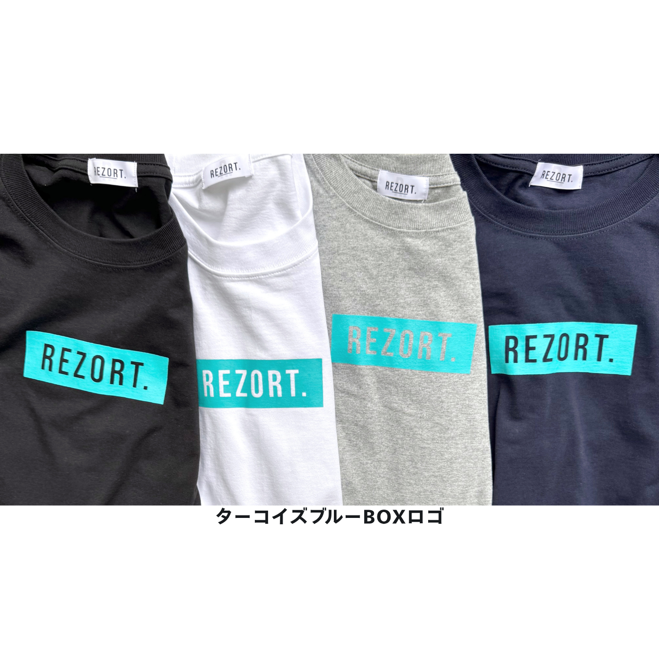 ブランドのシグネチャーであるターコイズBOXの中で、浮かび上がるREZORT.ロゴ。