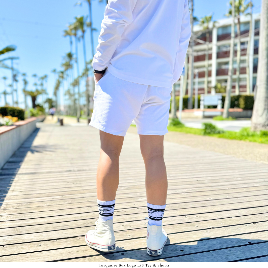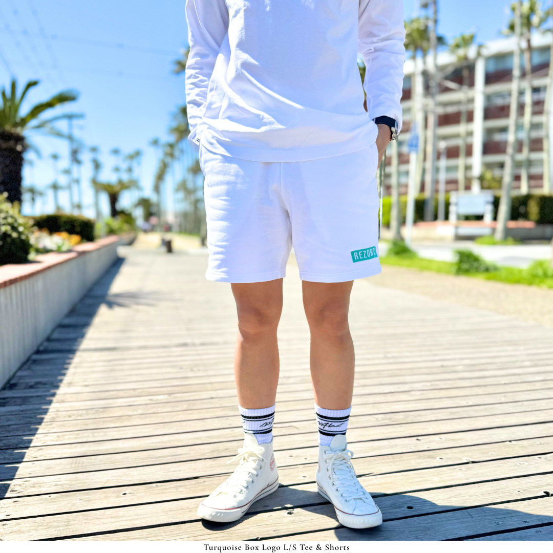Embroidered Turquoise Box Logo Sweat Shorts - 8.4oz - Summer Edition (WHT)