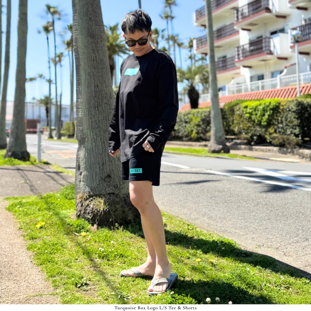 ブランドのシグネチャーであるターコイズBOXの中で、浮かび上がるREZORT.ロゴ。