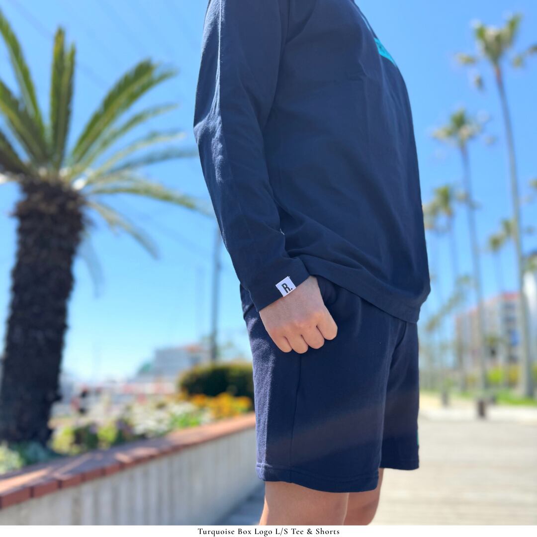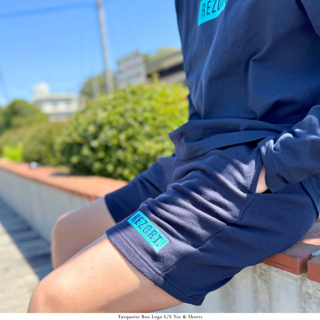 Embroidered Turquoise Box Logo Sweat Shorts- 8.4oz - Summer Edition (NVY)