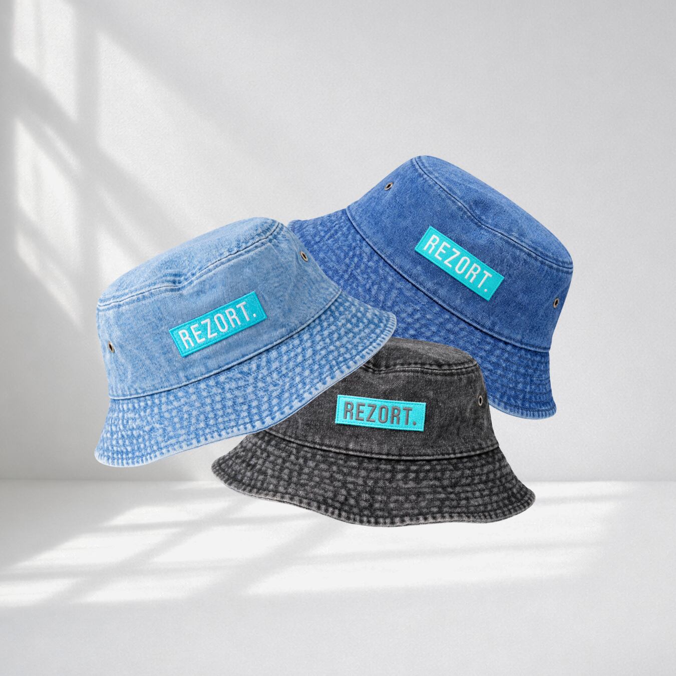 Turquoise Box Logo Embroidered Denim Bucket Hat - All Season (LBL)
